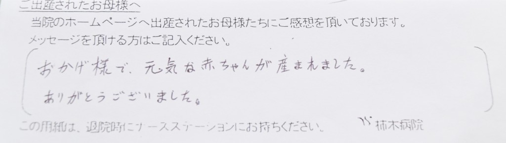 おかげ様で、元気な赤ちゃんが産まれました。ありがとうございました。