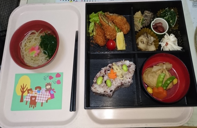 柿木病院で松花堂を食べる機会があれば美味しい料理だけでなく、手作りカードも楽しみにして
