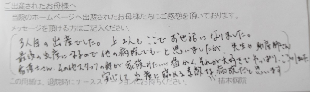 3人目の出産でした。上2人もここでお世話になりました。<br />