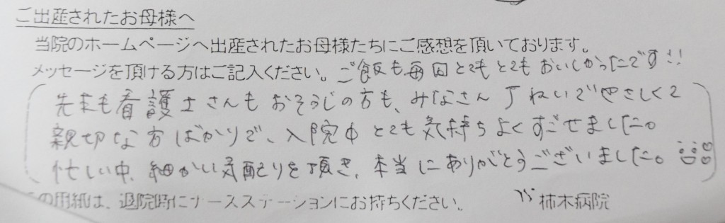 先生も看護士さんもおそうじの方も、みなさん丁ねいでやさしくて親切な方ばかりで、入院中とても気持ちよくすごせました。忙しい中、細かい気配りを頂き、本当にありがとうございました。(^O^)♡<br />