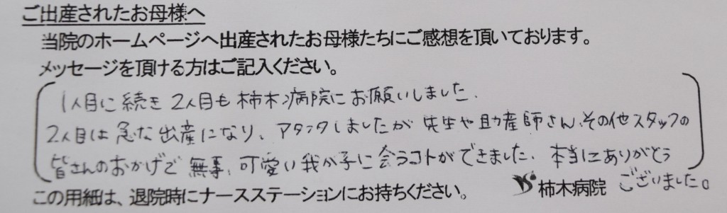 1人目に続き2人目も柿木病院にお願いしました。<br />