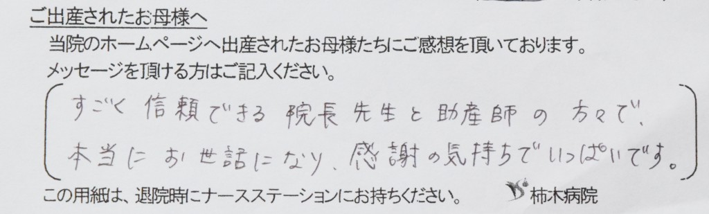 すごく信頼できる院長先生と助産師の方々で、本当にお世話になり、感謝の気持ちでいっぱいです。