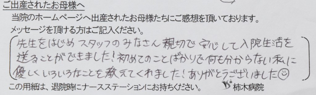 先生をはじめスタッフのみなさん親切で安心して入院生活を送ることができました!初めてのことばかりで何も分からない私に優しくいろいろなことを教えてくれました!ありがとうございました☺