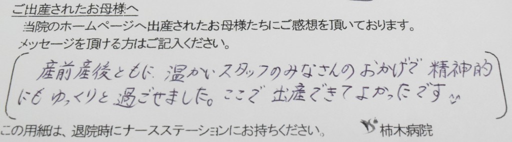 産前産後ともに、温かいスタッフのみなさんのおかげで精神的にもゆっくりと過ごせました。ここで出産できてよかったです(^v^)