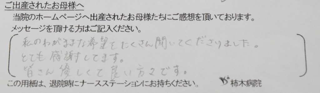 私のわがままな希望をたくさん聞いてくださりました。<br />