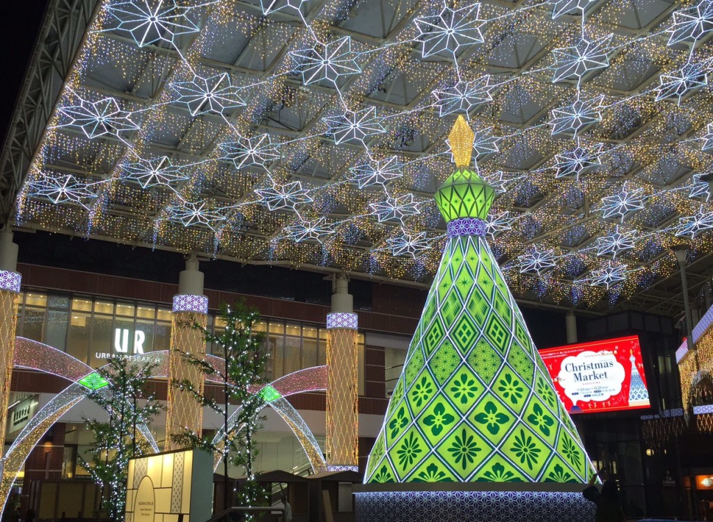 鹿児島中央駅の今年のツリーは、薩摩切子をイメージしたものらしく、変わっていて素敵な感じですね(^^)