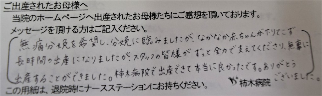 柿木病院で出産できて本当に良かったです。ありがとうございました。