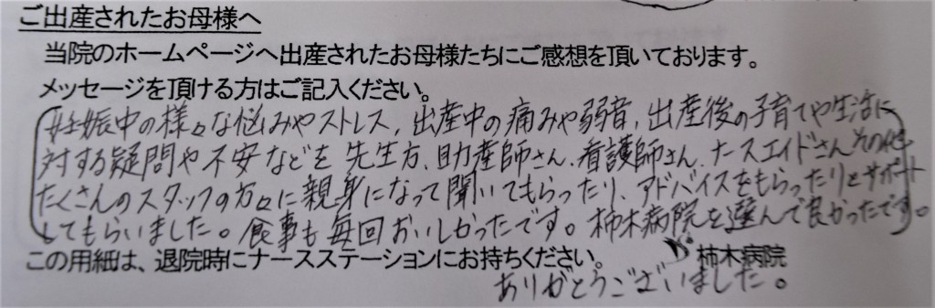 柿木病院を選んで良かったです。ありがとうございました。