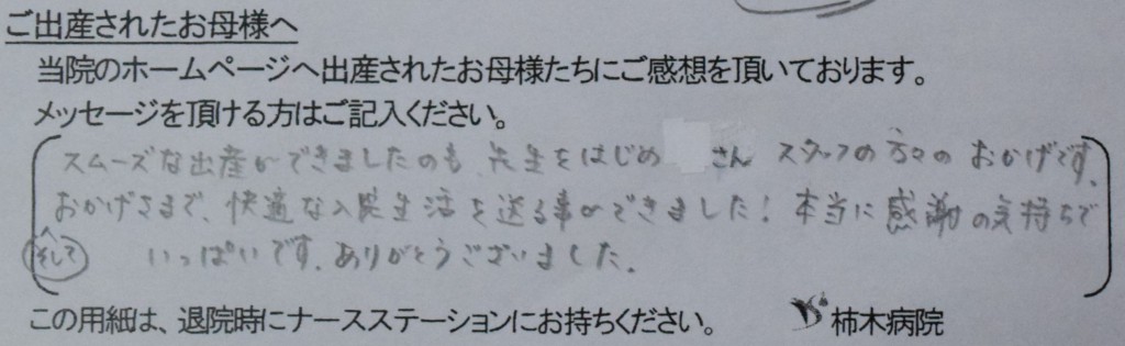 スムーズな出産ができましたのも先生はじめ、スタッフの方々のおかげです。<br />