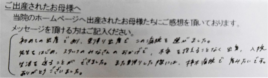 できました。また里帰りした際には、柿木病院で産みたいです。ありがとうございました。