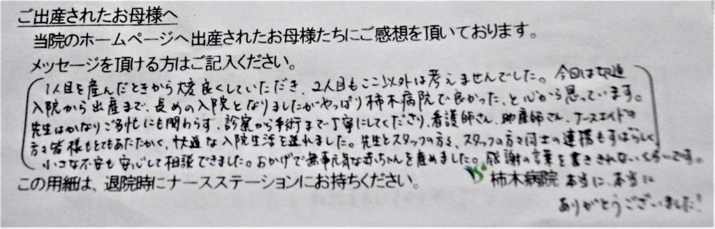 切迫入院から出産まで、長めの入院となりましたがやっぱり柿木病院で良かったと、心から<br />