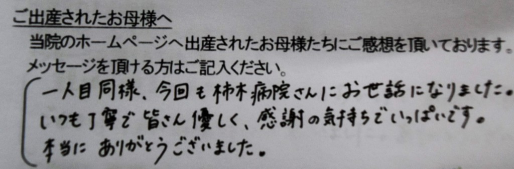 1人目同様、今回も柿木病院にお世話になりました。<br />