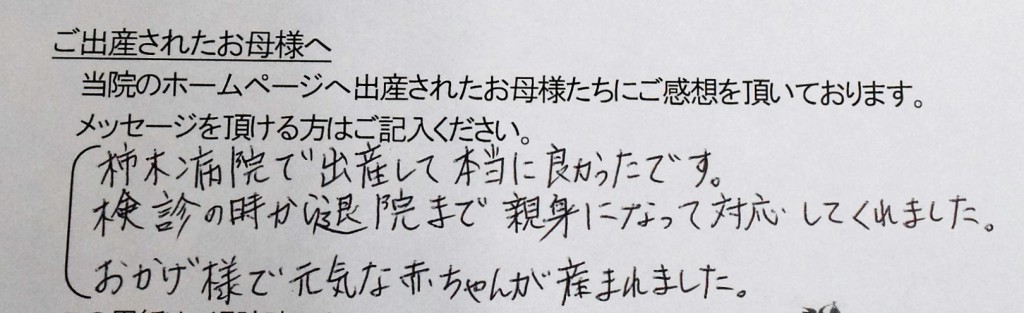 検診の時から退院まで親身になって対応してくれました。おかげ様で元気な赤ちゃんが産まれました。