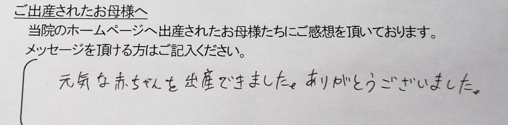 元気な赤ちゃんを出産できました。ありがとうございました。