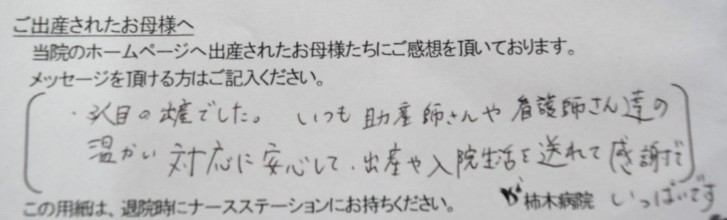 3人目の出産でした。いつも助産師さんや看護師さん達の温かい対応に安心して、出産や入院生活を送れて感謝でいっぱいです♡