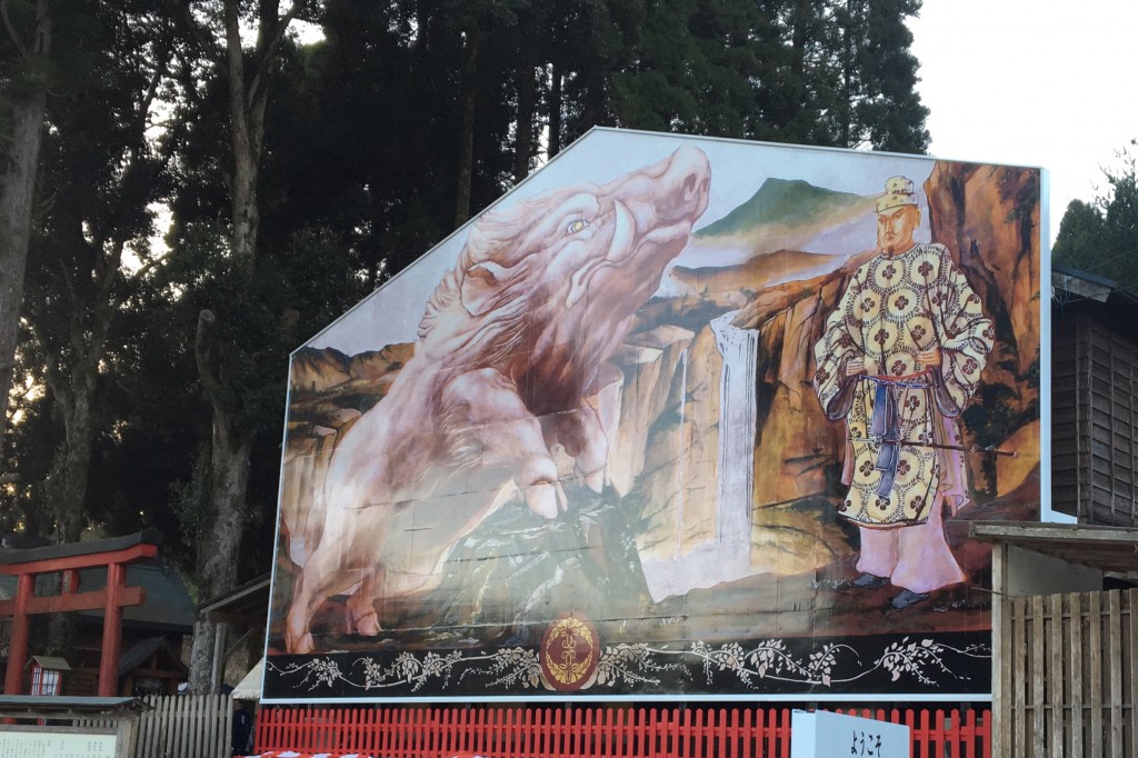 神社に着くと、イノシシの描かれた畳約50畳分の大きな絵馬があり、とても迫力が!!