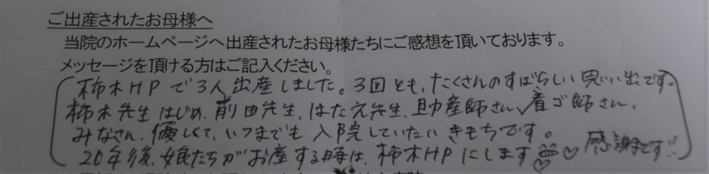 20年後、娘たちがお産するときは、柿木HPにします(^^♡♡ 感謝です!!