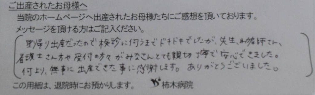 何より、無事に出産できた事に感謝します。ありがとうございました。