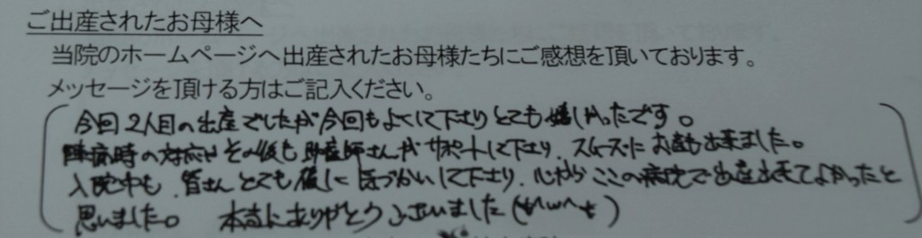 今回2人目の出産でしたが、今回も良くして下さりとても嬉しかったです。<br />