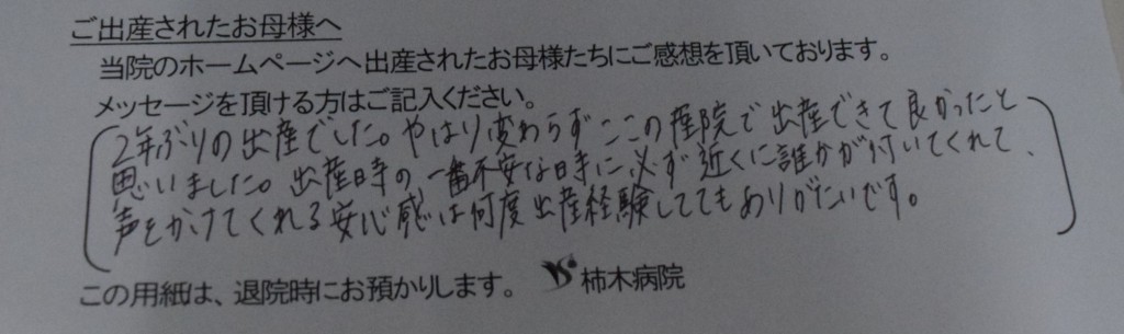2年振りの出産でした。やはり変わらずここの産院で出産できて良かったと思いました。<br />