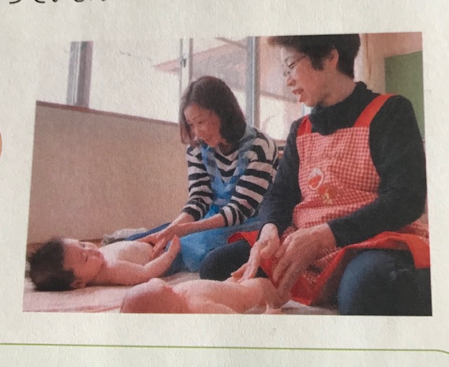 産後ケア応援券事業がスタートし、利用率が年々上昇しています。そこで、言葉を持たない赤ちゃんにとって肌と肌を触れ合う事は会話そのもので、言葉を超えて分かり合う愛着形成につながる事、お母さん方の体験から赤ちゃんへの効果では赤ちゃんの肌を丈夫にし、免疫力、抵抗力を高め、血行をよくして、新陳代謝が活発になり、消化機能を高め、腸の動きがよくなって便秘が解消するとか関節が柔らかくなるとか、寝つきが良くなる、表情が豊かになるなどが多いですが、まずは続けることを楽しんで頂きたい。