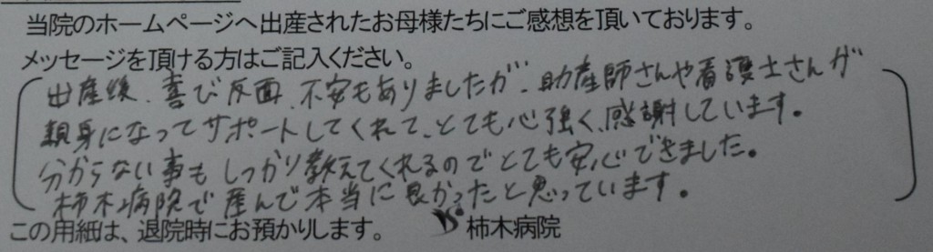 柿木病院で産んで本当に良かったと思っています。