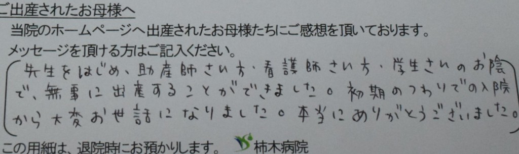 初期のつわりでの入院から大変お世話になりました。<br />