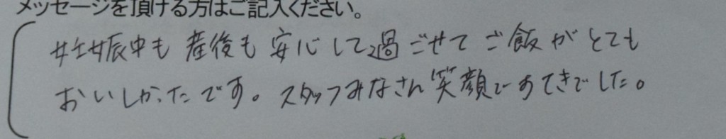 妊娠中も産後も安心して過ごせてご飯がとても<br />