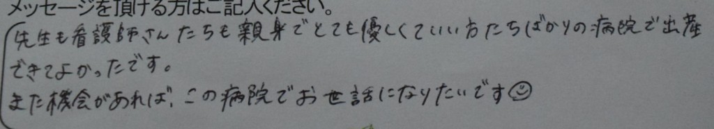 いい方たちばかりの病院で出産できてよかったです。<br />