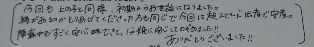陣痛中もすごく安心できて、分娩に安心してのぞめました。<br />