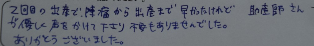2回目の出産で、陣痛から出産まで早かったけれど助産師さん<br />