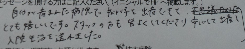 スタッフの方も皆よくしてくださり安心して出産し<br />