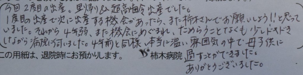 1度目の出産で次に出産する機会があったら、また柿木さんで<br />