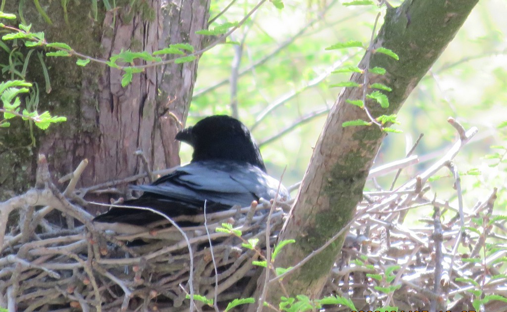 3月下旬ごろヒナが産まれ、つがいでエサを運んで与えている姿を見るといつもは厄介者のカラスですがヒナが順調に育って巣立ちしてほしいと思います。