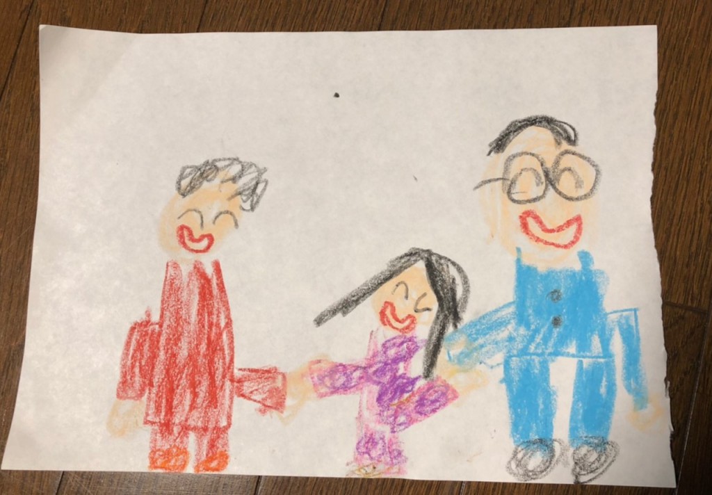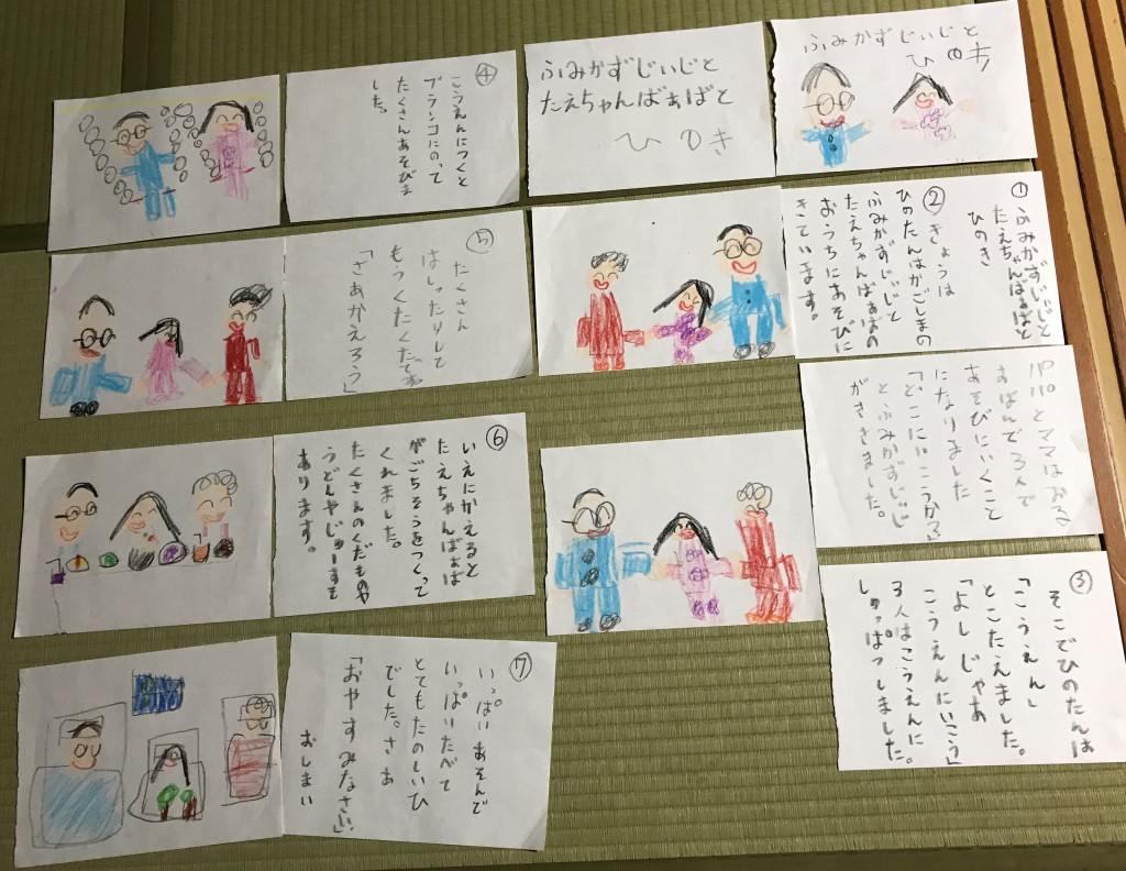 健康に私らしく与えられた人生を歩むために、普通に話せて、普通に歩けて、普通に両手が使える等、「普通を大事にする生活設計」をしたいと新たに意気込んでいます。最近は健康を維持出来ている高齢者を尊敬する日々です。早速5月からスポーツセンターアのアクア会員になり、週2回プールに入っています。下の絵は5歳の孫が心配して物語を作って送ってくれました。