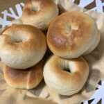 ベーグル? 2022.05.18 ブログに書くネタを作るためにベーグルを焼きました! 見てください!!!!! 上手に焼けましたね〜^^ ベーグルは基本的に強力粉、水、塩、ドライイーストの材料のみで作れます☺︎ 焼く前の茹でる作業によって【外カリカリ・中もちもち】の食感になり満足感が得やすいし、油や砂糖を使わないため他のパンと比べてダイエットにおすすめです? 健康診断での現実を受け入れて、ダイエットしたいと思います… 栄養管理部 N