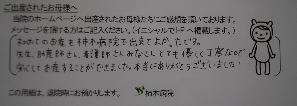 初めてのお産を柿木病院で出来てよかったです。<br />