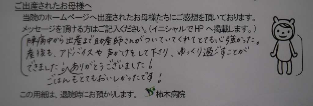 陣痛中から出産まで助産師さんがついていてくれてとても心強かった。産後もアドバイスや声かけをして下さり、ゆっくり過すことができました!ごはんもとてもおいしかったです!<br />