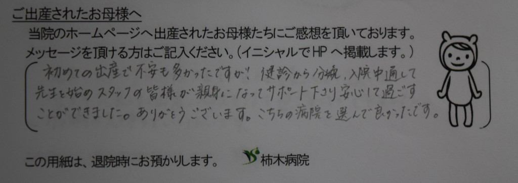 スタッフの皆様が親身になってサポート下さり、安心して過ごすことができました。ありがとうございます。こちらの病院を選んで良かったです。