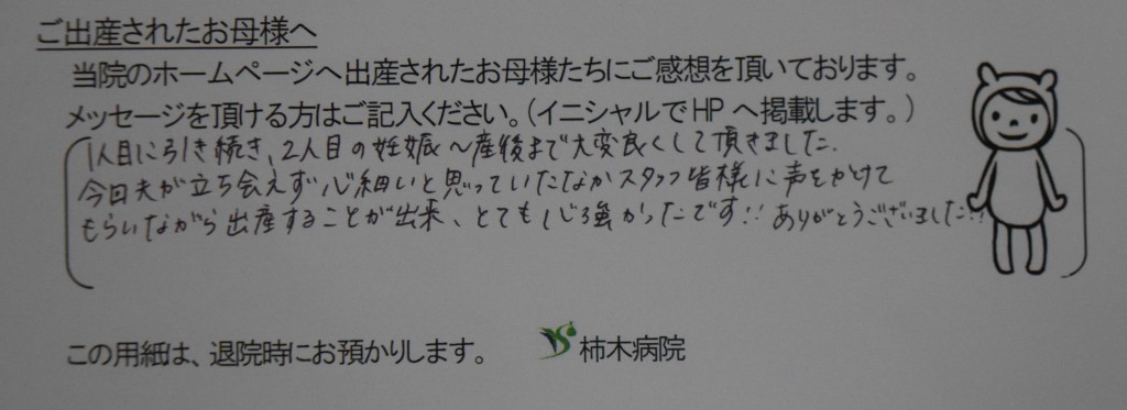 1人目に引き続き、2人目の妊娠~産後まで大変良くして頂きました。<br />