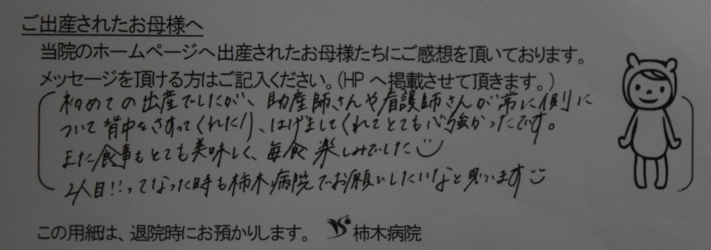 2人目!ってなった時も柿木病院でお願いしたなと思います。