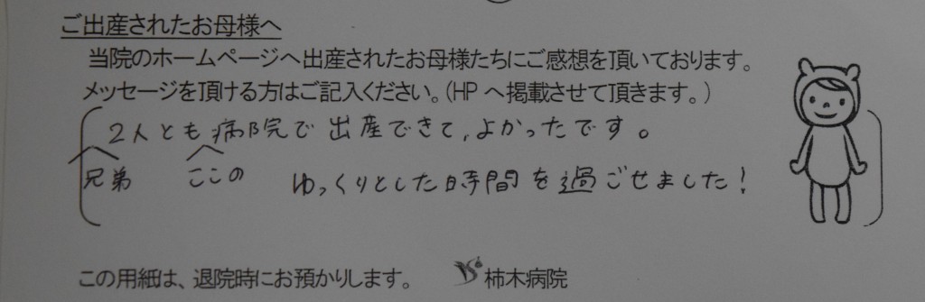 兄弟2人ともここの病院で出産できて良かったです。<br />