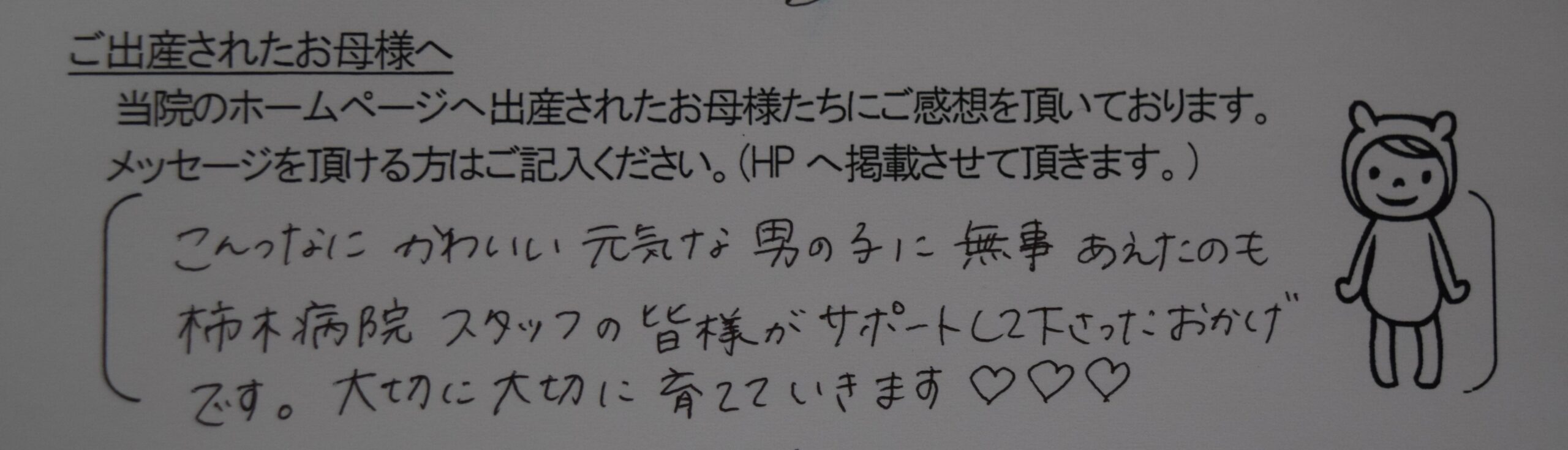 こんっなにかわいい元気な男の子に無事あえたのも柿木病院スタッフの皆様がサポートして下さったおかげです。大切に大切に育てていきます♡♡