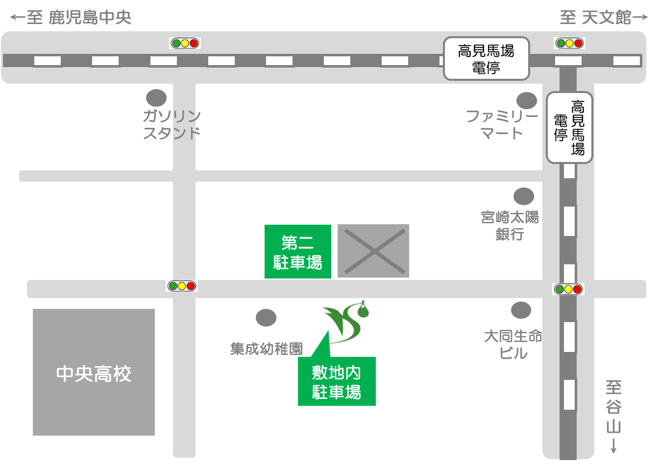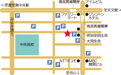 アクセス アクセスマップ 鹿児島県鹿児島市加治屋町15−3 アクセス順路 高見馬場交差点を荒田方面 100m程直進 1個目の信号を右折 ガラス張りのビルが目印 駐車場は当院敷地内(スペースに限りがございます) 住所 住所 〒892-0846 鹿児島市加治屋町15番3号 お問い合わせ Tel.099-224-3939 Fax.099-224-3553 アクセス 鹿児島市電『高見馬場』電停より徒歩2分『加治屋町』バス停より、徒歩4分なお、お車でお越しの方は、「敷地内駐車場」、または「第二駐車場」(※当院と道路を挟んで向かい側)をご利用ください。