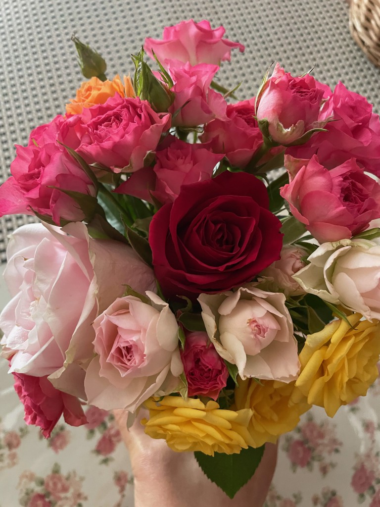 今私の部屋にはとても綺麗なミニバラが咲いています。