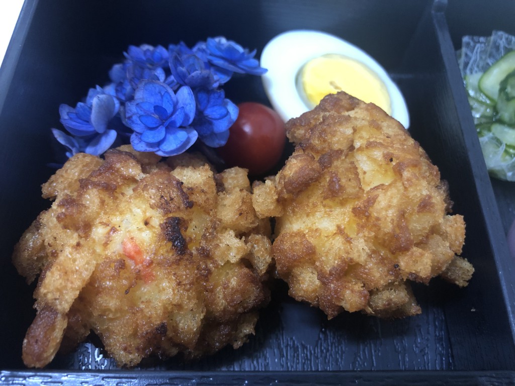 基本はクリームコロッケですが、この梅雨時期に合わせて、衣を角切りの食パンに替えて紫陽花の感じを出しています!バターや乳製品を使用するので、おっぱいが張る時には注意して下さいね><体調と相談してたまには変わった演出をしてみるのも、じめじめしたこの季節に気分転換になれば、と思います♪