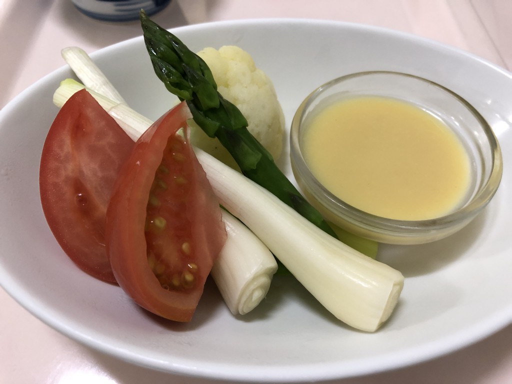 - 野菜を盛り合わせて酢味噌を添えて完成!