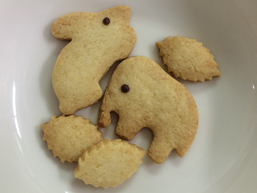 4. めん棒で厚さ2~3mmにのばし、型抜きし、フォークで穴をあける。(※型抜きでなく、包丁で切り分けてもOK)