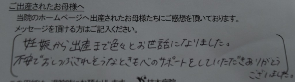 不安でおしつぶされそうなときも心のサポートをしていただきありがとうございました。