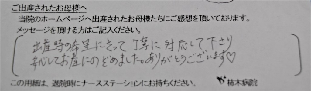 出産時の希望にそって丁寧に対応して下さり安心してお産にのぞめました。ありがとうございます♡